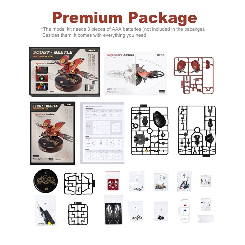 - 【Simulation of Flying Wings】 The metal 3D puzzle simulates the quick flapping of beetle's wing membrane. The kit uses planetary gear motor produces steady energy to make its wings flaps up to 720 times per minute. It requires 3 pieces of AAA batteries (not inclueded).