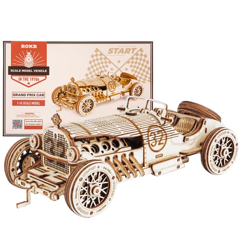 ROKR 3D Wooden Puzzle for Adults Mechanical Car Model-DIY Building Vehicle Kits-Brain Teaser Toys-Gift for Men Women on Birthday/Christmas Day(Grand Prix Car)
