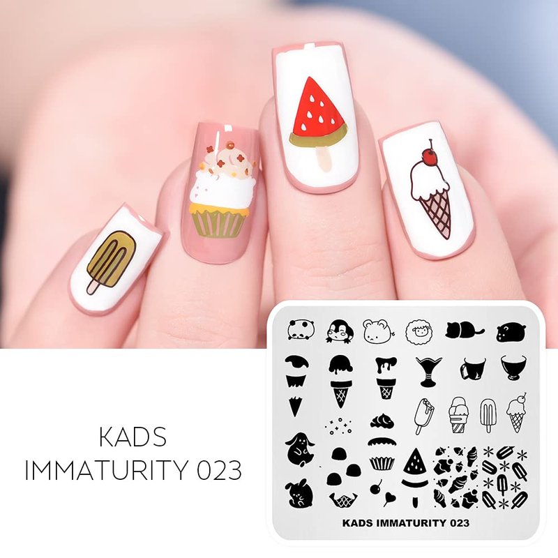Rolabling Nail Stamping Plate Stainless Steel Nail Plates Template Nail Polish Stamping Ice Cream Cute Animals Image Stencil Manicure Printing Design (IM023)