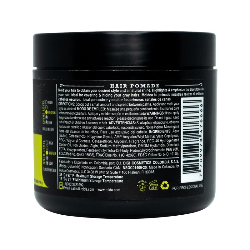 Rolda Black Pomade - Medium Hold With Radiant Shine - Grey Hair Coverage - Water-Based, All-Day, Flake-Free Formula