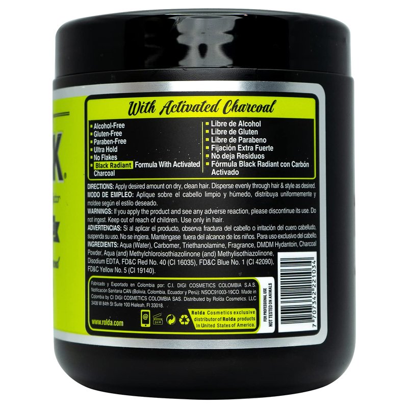 - Black Colored Styling Gel For Dark Hair; Provides Strong Hold And A Temporary Color Tint For Hair; Black Radiance Formula Includes Activated Charcoal