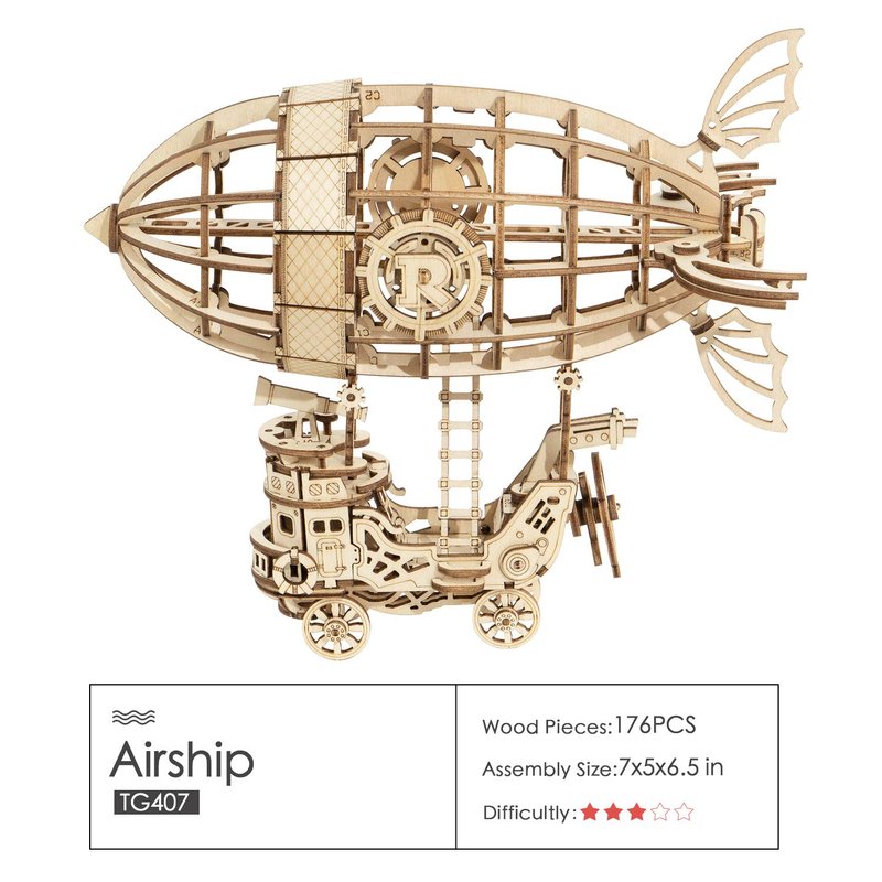 - The airship wooden model kits consist of 176 wooden pieces and it takes 1-2 hours to put it together.