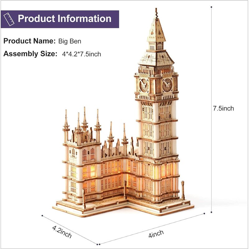 - The BIG BEN wood model kit consists of 220 wooden pieces and it takes 1.5-2 hours to put it together. It will be easy to build even if you are 3D puzzle beginner.