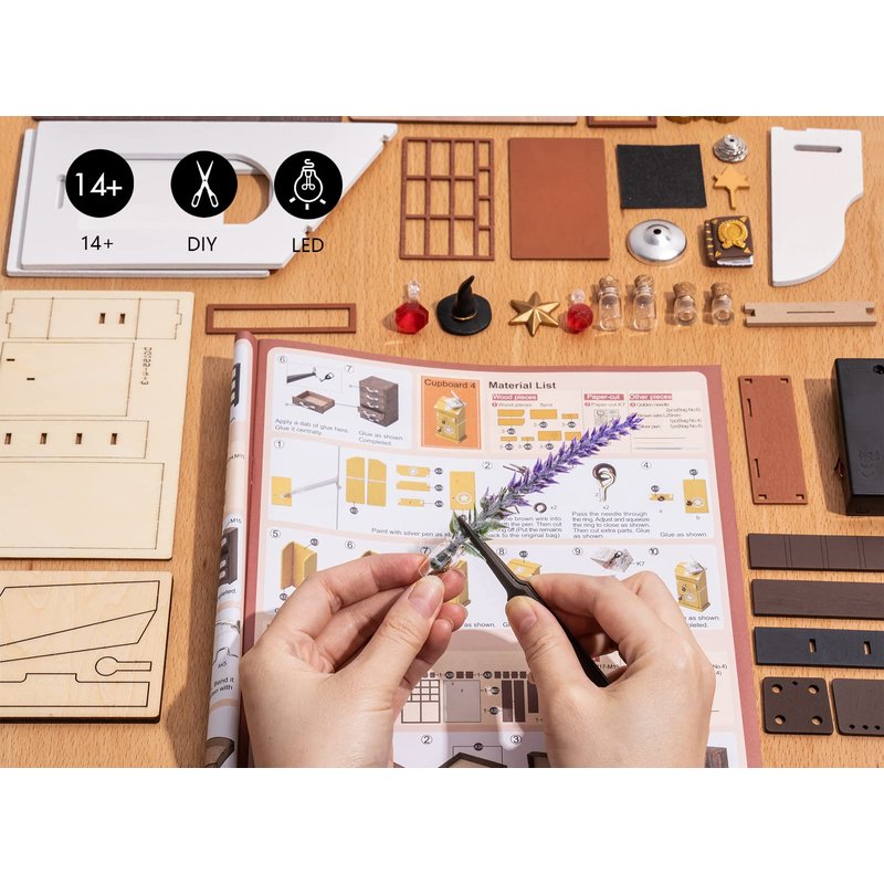 Rolife Kiki's Magic Emporium presents a mystical store of magic world. So much fun to craft and play with. Make mini furnitures with your own hands. You will have a relaxing time to finish an art work!