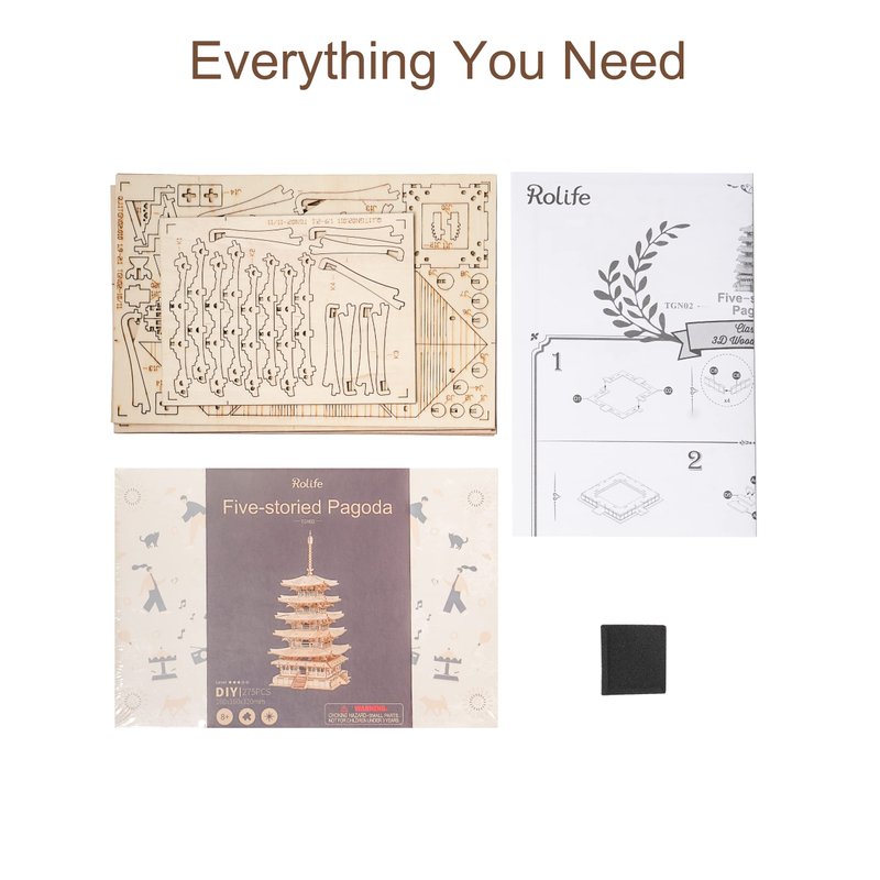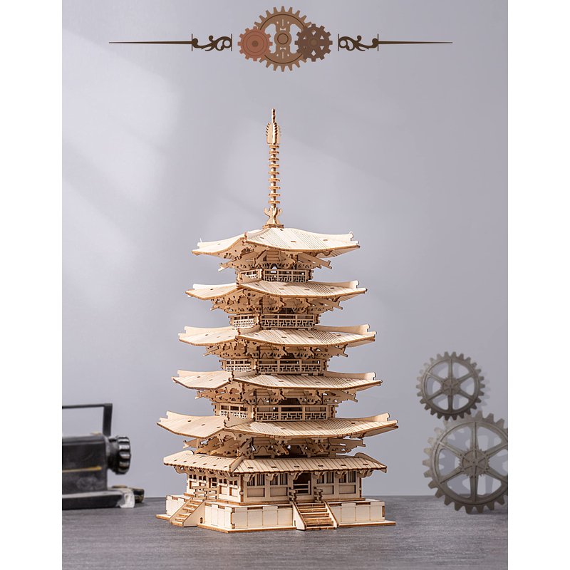 Rolife Wood Model Kits for Adults to Build 3D Puzzles DIY Five-storied Pagoda Birthday Unique Gifts for Friends or Family