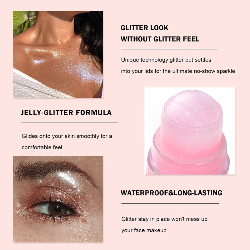 - How To Use --- First, turn the bottle of body glitter upside down and shake it; gently tap the bottom of the bottle to get the glitter gel into the rolling ball faster; gently roll the rolling ball on the spot where you want to apply, so that the glitter gel will be evenly released from the rolling ball to give a shimmering effect.