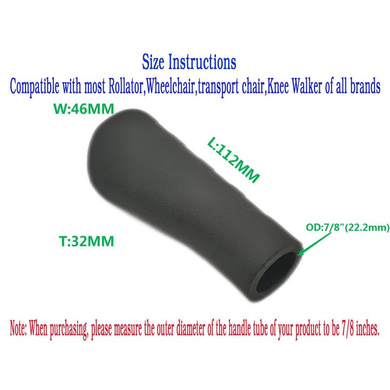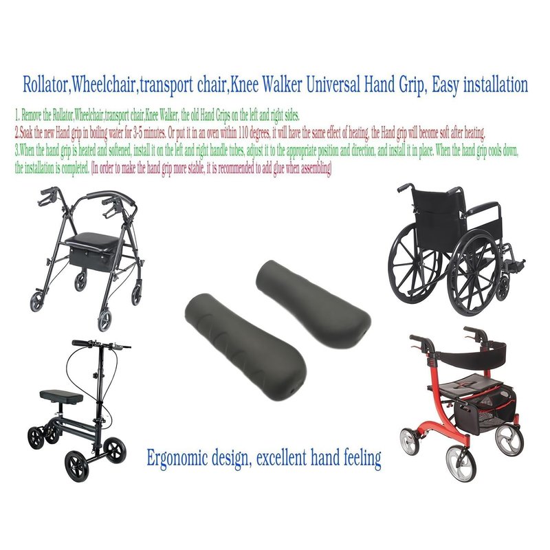 - 2.Universal Hand Grip Replacement Parts, Ergonomic design makes, Surface Anti-slip texture, Excellent comfort, compatible with all brands: Rollator, Wheelchair, Transport chair, Knee Walker, the new style of Hand Grip is your best choice, easy installation without tools.