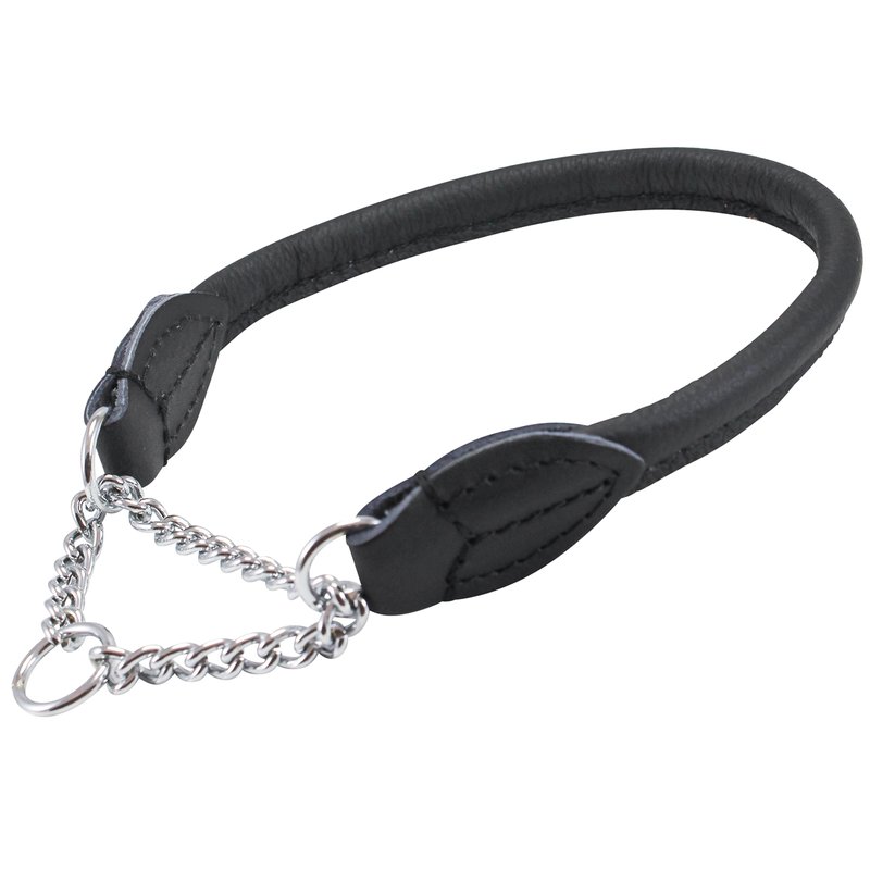 Rolled Genuine Leather Martingale Dog Collar Choker Black 7 Sizes (#3 - Neck Circumf.10.5"-12.25")