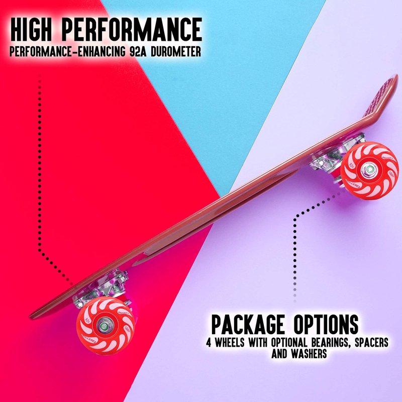 ✅【HIGH PERFORMANCE】 -- Performance-enhancing 92A durometer ✅【DURABLE & BUILT TO LAST】 -- Made of abrasion-resistant, high-density urethane material to withstand heavy use and still glide like new ✅【PACKAGE OPTIONS】 -- Available in 2 package options: 4 wheels and 4 wheels with bearings, spacers and washers ✅【COLOR OPTIONS】 -- Comes in 2 color choices: Rocket Red and Steel Black ✅【QUALITY GUARANTEE】 -- We provide only high-quality wheels. If you are not fully satisfied for any reason, just contact us by Amazon messaging within 30 days for a full refund of your purchase price.