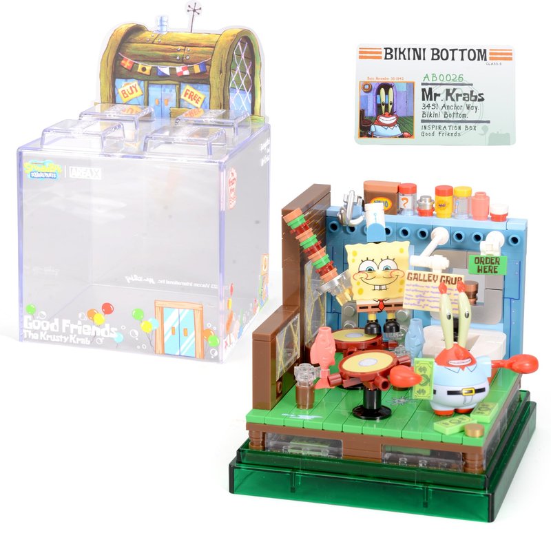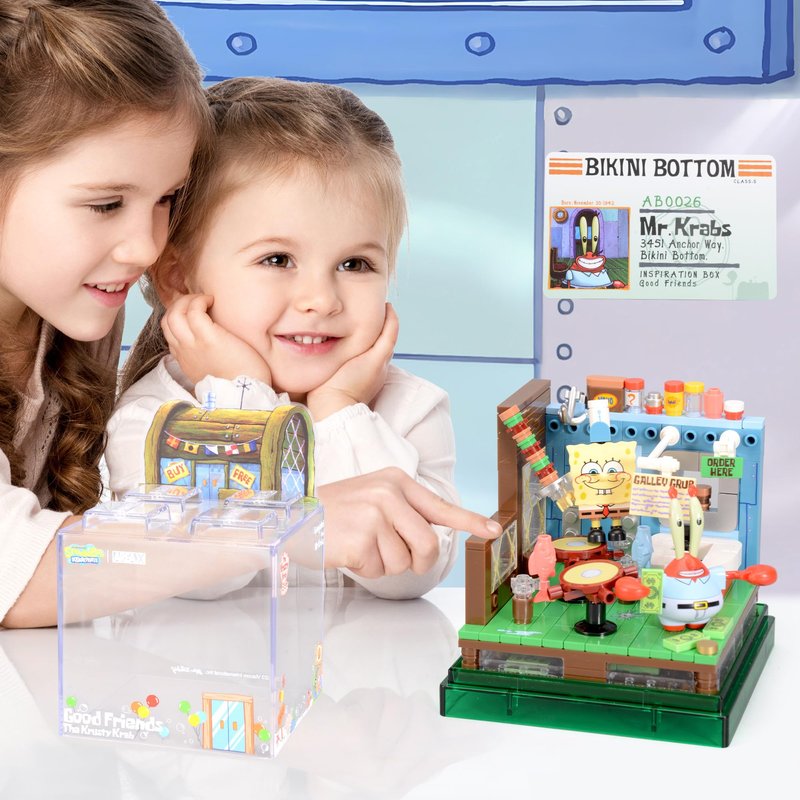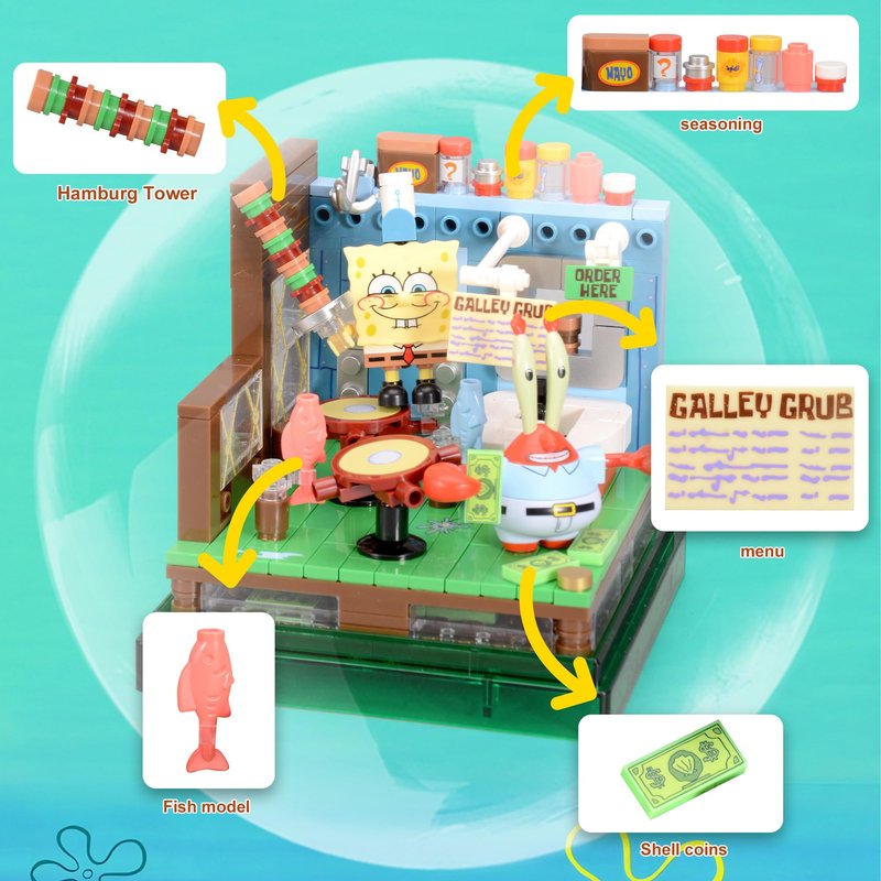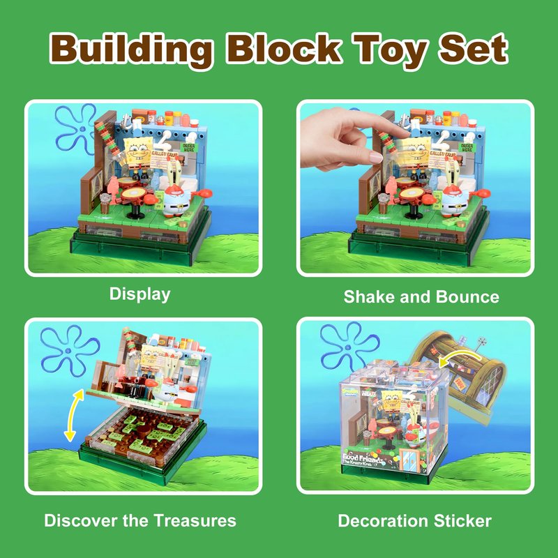 ROLOSO Sponge Squarepants Toy Building Brick Blocks Toys Sets 308 pcs Box kit Action Figures Pineapple House Patrick Stone Star Home for Creative Boys and Girls Fans Great Gift STEM