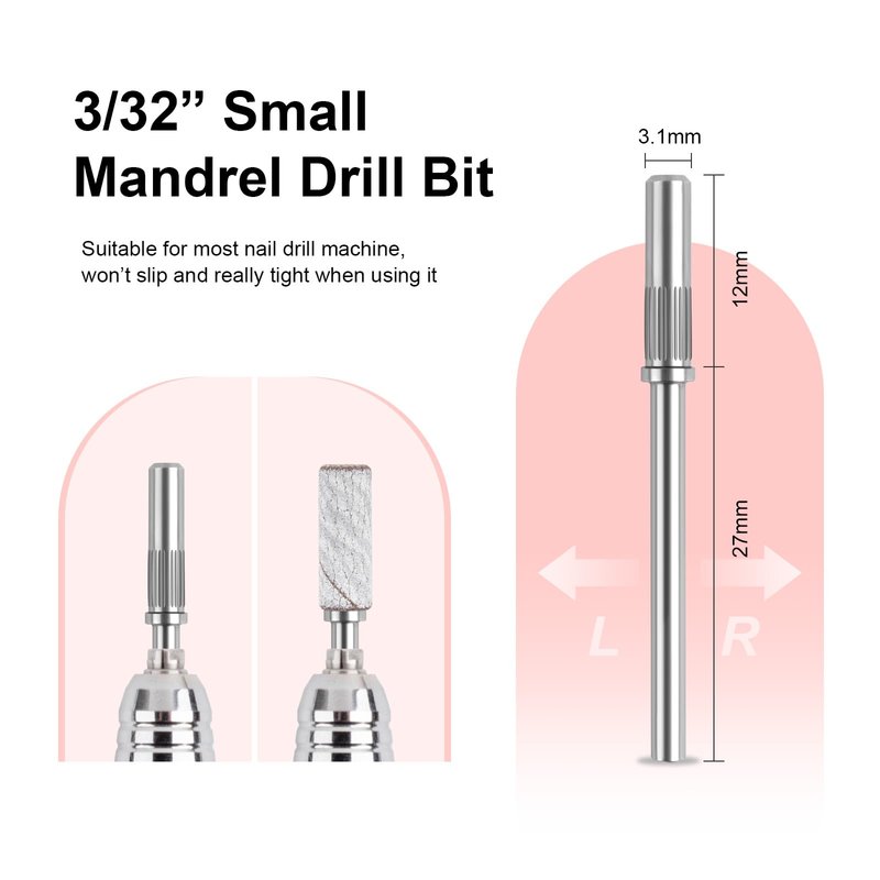 - Easy to Use: The small mandrel bits are suitable for most 3/32" nail drill machines. Select asmall sanding band nail drill bit in place over the small mandrel bit and gently apply pressure to the surface of the bed. Provide a friendly and easy-to-use nail care experience!