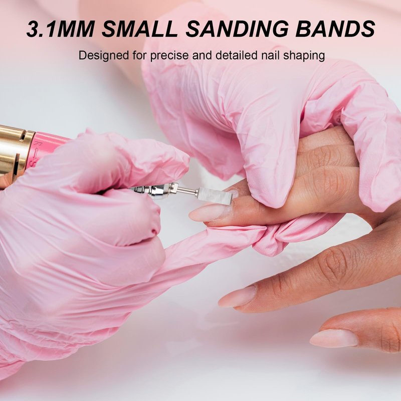 - Smaller Precise & Safety Shaping: Small sanding bands and small mandrel bits are designed for precise and detailed nail shaping, and provide optimal finesse when preparing the underside of gel. Easy and controlled sanding of the nail without damaging the skin around the nail plate, for a flawless nail surface preparation.