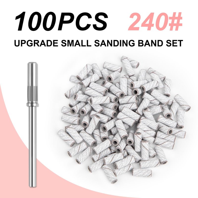 - Upgrade 3.1MM Mini Sanding Bands Set: Quantity: 100pcs Small Sanding Bands and 1pcs Mandrel Bit| Color: Zebra| Grit: 240 Extreme Fine|Mandrel Shank Size: 3/32''. Each mini sanding bands for nail drill set comes in a beautiful clear case, easy to store and carry, and dustproof and waterproof.