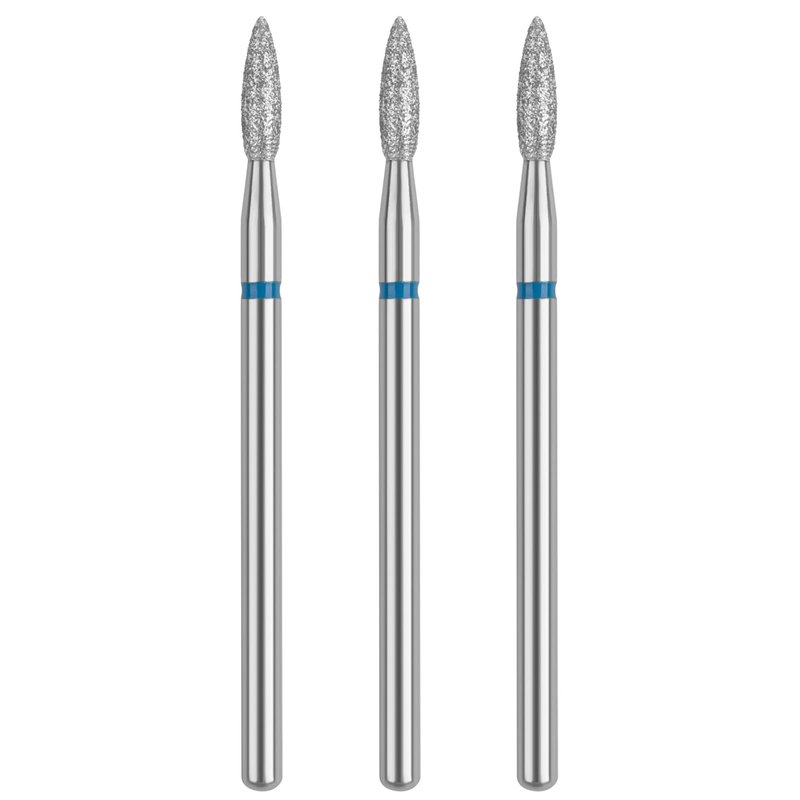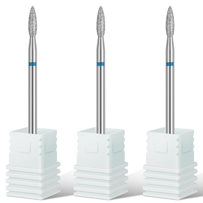 - Flame Shape Cuticle Nail Drill Bit: Quantity: 3Pieces, Grit: Medium, Color: Silver, Fits 3/32'' Shank Size, Two-Way Rotation