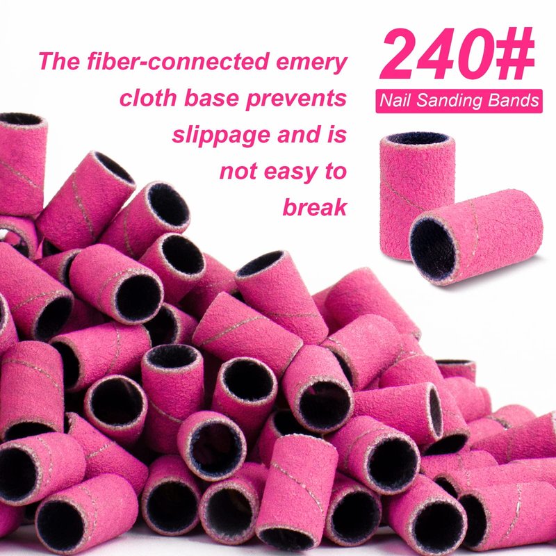 - 240# girt nail sanding bands set:you will receive 100pcs nail sanding bands,2pcs 3/32 inch silver replacement nail drill bits sanding band mandrel and 1storage box,extreme fine girt 240# is perfect for nail polish and polishing tools,suitable for professional studio or home use,perfect for manicures and pedicures