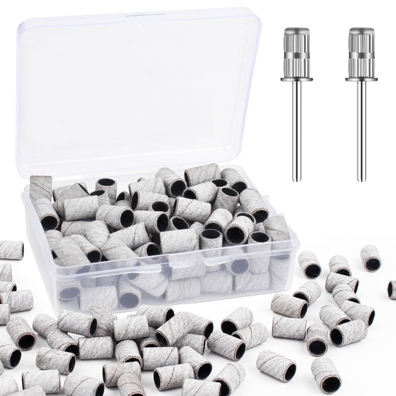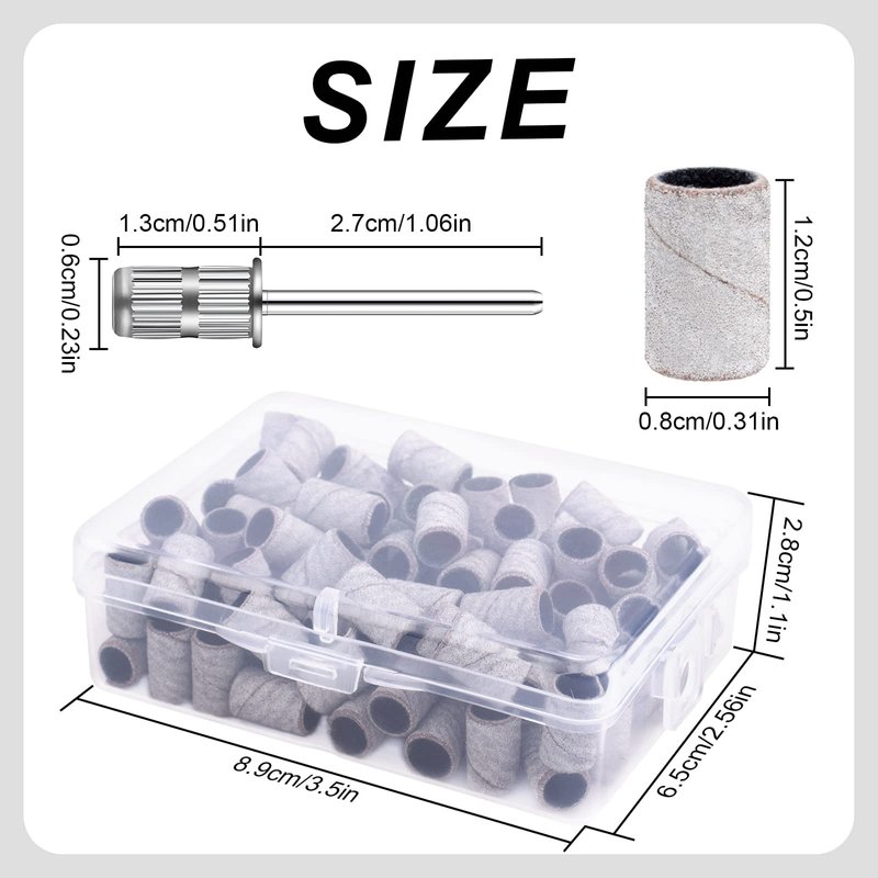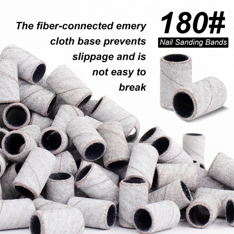 - 180# girt nail sanding bands set:you will receive 100pcs nail sanding bands,2pcs 3/32 inch silver replacement nail drill bits sanding band mandrel and 1storage box,fine girt 180# is perfect for nail polish and polishing tools,suitable for professional studio or home use,perfect for manicures and pedicures
