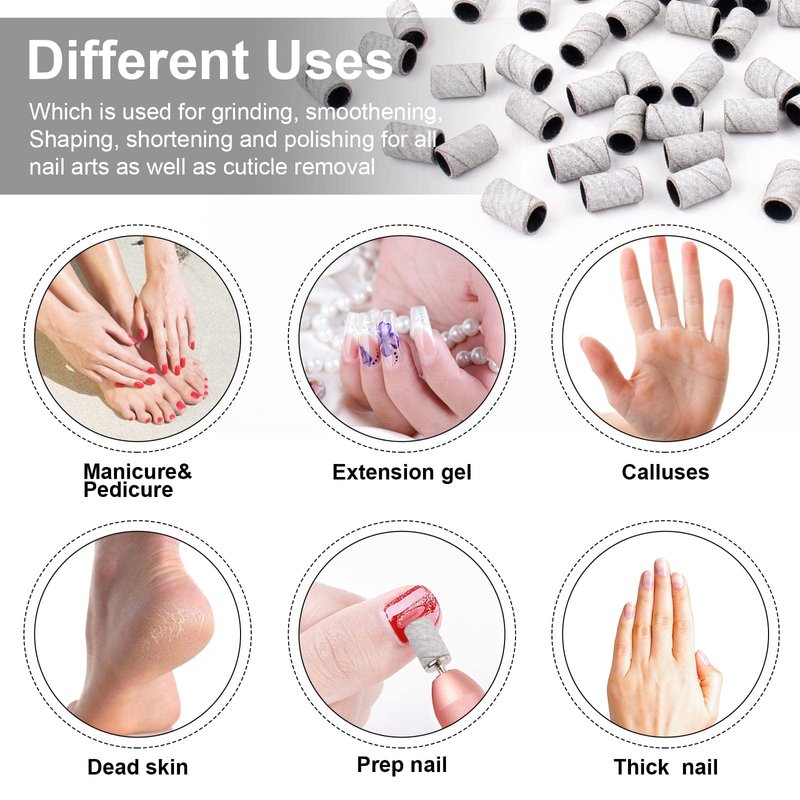 - Multifunctional sanding belt:the nail sanding bands are suitable for most sizes of 3/32 inch electric nail drills and other drills that use sanding bands. It can polish, shape, shorten, smooth and polish natural and artificial nails, remove gel nail dip powder poly nail gel and so on,can also be used for daily engraving and milling