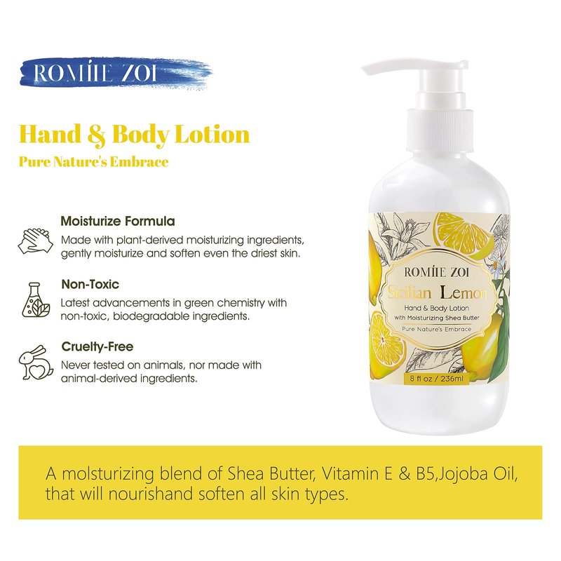 ROMIIE ZOI Daily Hand & Body Lotion with Moisturizing Shea Butter - Sicilian Lemon - 236 ML / 8 FL OZ
