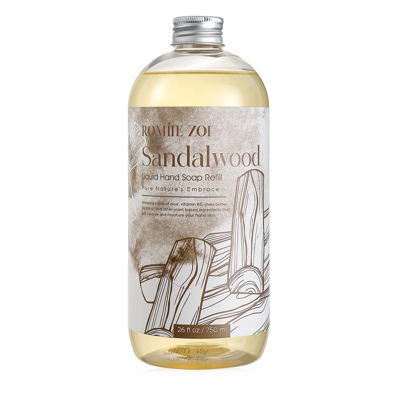 ROMIIE ZOI Liquid Hand Soap Refill, Sandalwood, Gentle & Moisturizing Formula, 750 ML/ 26 FL OZ