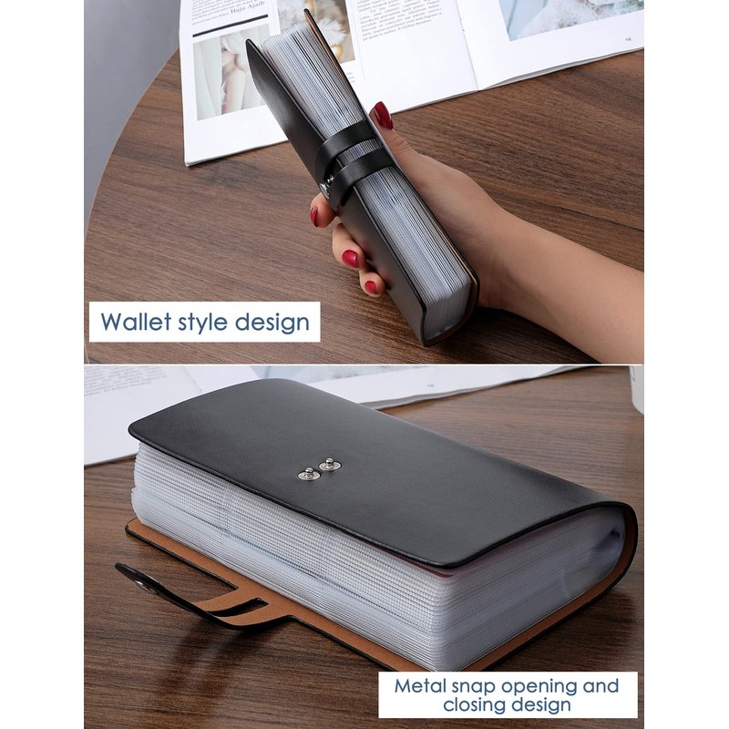 >>2.Easy to read and manage cards: The internal card slot is made of translucent plastic. The translucent card holder page clearly shows the picture and text of the card in the card holder so you can read and manage the card. Securing all cards in a credit card holder with two rows of adjustable elastic metal buttons is the best way to prevent the loss of important credit cards.