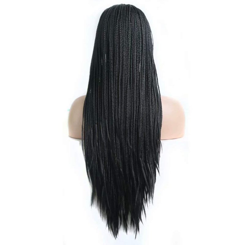 RONGDUOYI RDY 24 Inches Black Braided Lace Front Wigs for Black Women Natural Hairline Synthetic Wig Pre Plucked Glueless Braids Wig (180% Density,Style1)