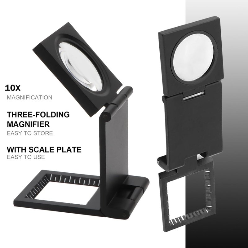 - 【COMPACT DESIGN】Compact folding magnifier with fixed scales with scale and measurement in inch and mm units leaves both hands free, convenient for you to use.