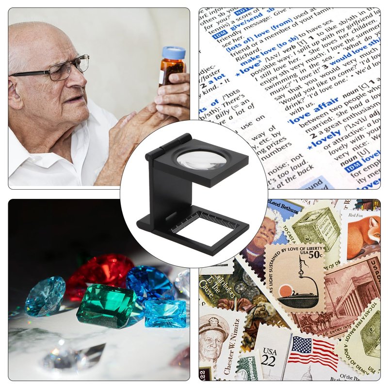 Folding and standing design, provides a fixed focus, used for counting threads, stitches, or measuring small parts, great for watch industry, jeweler, woven fabric.