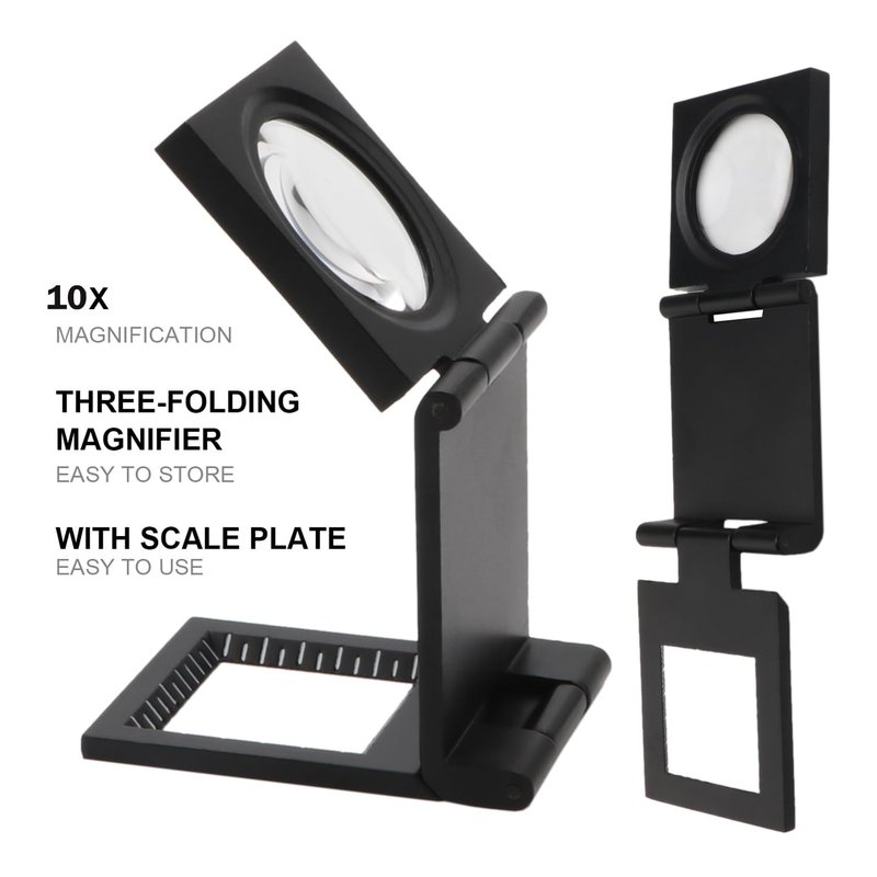 - 【Foldable and Standing Design】 This triple folding magnifier loupe magnifier provides a fixed viewing stand for counting threads, stitches, checking fabric quality, checking color differences in prints, thread weights for barcodes or measuring small parts. You can also unfold the stand for freer viewing.