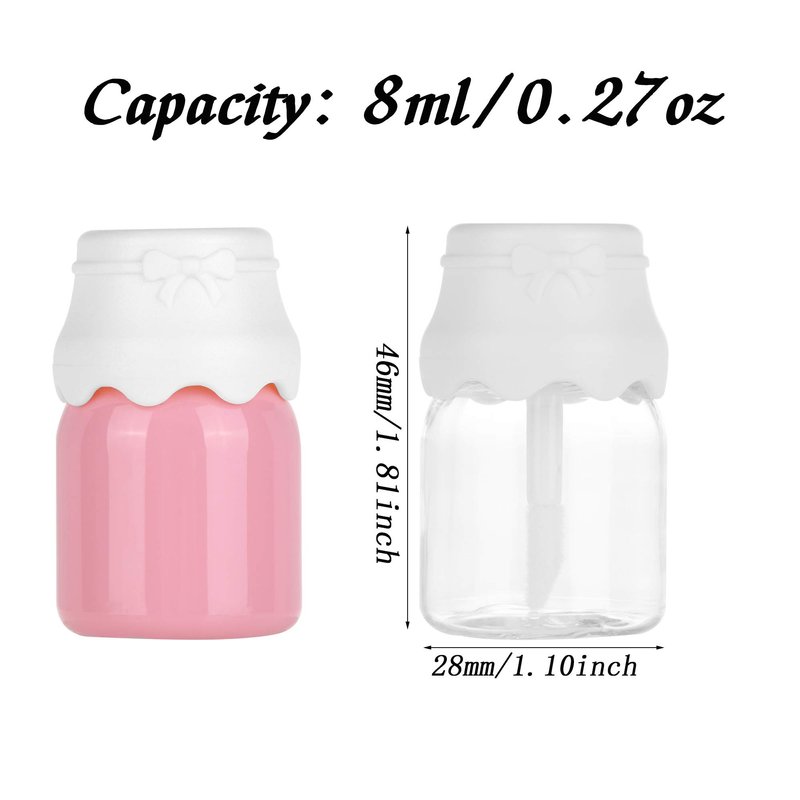 - 【Adorable milk bottle lip gloss tube set】The refillable lip gloss tube features in milk bottle shape looks novelty and adorable. The brush tip applicator wand helps you apply more easily and evenly. Awesome containers for your diys. No waste, the wand extends almost to the very bottom. Perfect to refill your lip gross or other cosmetic crafts