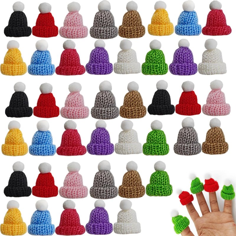 RONYOUNG 44PCS Mini Knitting Hats Christmas Mini Knitting Doll Hats Mini Wool Hat for Christmas Ornaments DIY Art and Craft
