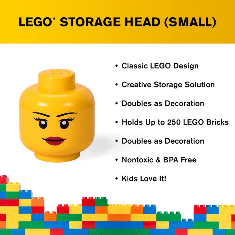 - FUN AND PLAYFUL: With this storage head, kids will have fun while tidying up their rooms Decorate, play, build, form and have fun with the boxes ; Ages 3+ ; LEGO bricks not included