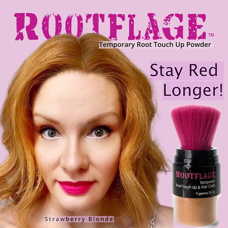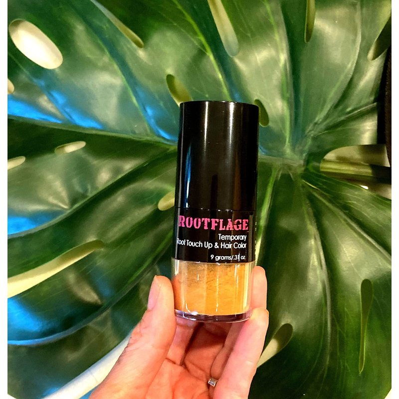 Rootflage temporary root touch-up and hair color is a quick-fix way to camouflage gray or dark roots or can be used to fill in thinning hair. Rootflage is a colored powder that doubles as a dry shampoo. Rootflage can also be used to create highlights, low lights, or to color correct hair color. Rootflage doesn't contain any harsh ingredients, won't damage your hair, shampoos out easily, is cruelty-free, and is made in the USA.