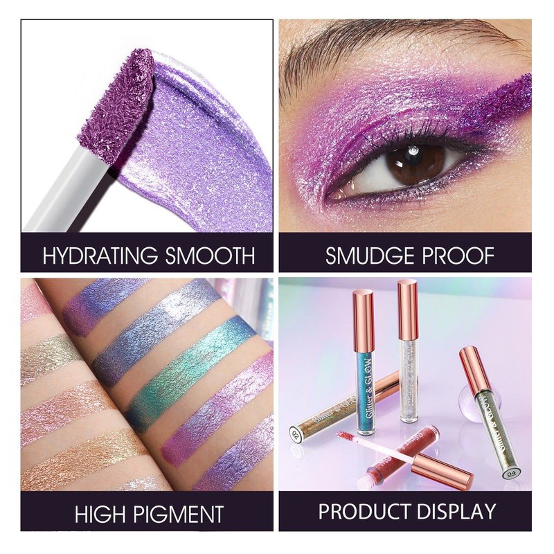 【Skin-Friendly Formula】Liquid glitter eyeshadow has a lightweight mousse-like consistency with a harmless formula that is smooth and without a crease, and easy to remove, just wiping it with clear water.