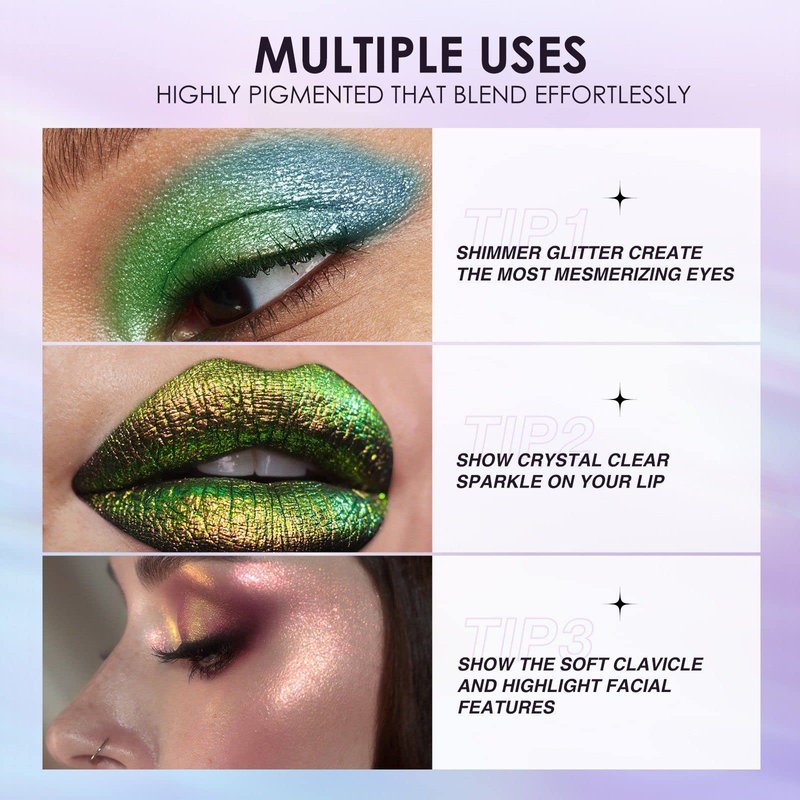 - 【 Multichrome Liquid Eyeshadow】A multi-faceted, multi-dimensional and transformative liquid eyeshadow. The unrivaled three-tone multichrome finish takes your eyes to the next dimension with color-changing technology innovations and liquid structure, creating the illusion of professional multi-layered eye makeup.