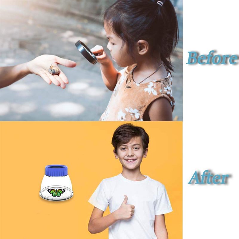 - Built-in 7cm Ruler in the bottom cover, It more than one bug magnifying box, also as educational gift help kids learn more about the length of the bug body,leg,tentacle or wings.If you take off the bottom cover, it will become 5x Focusable Stand Loupe Magnifiers