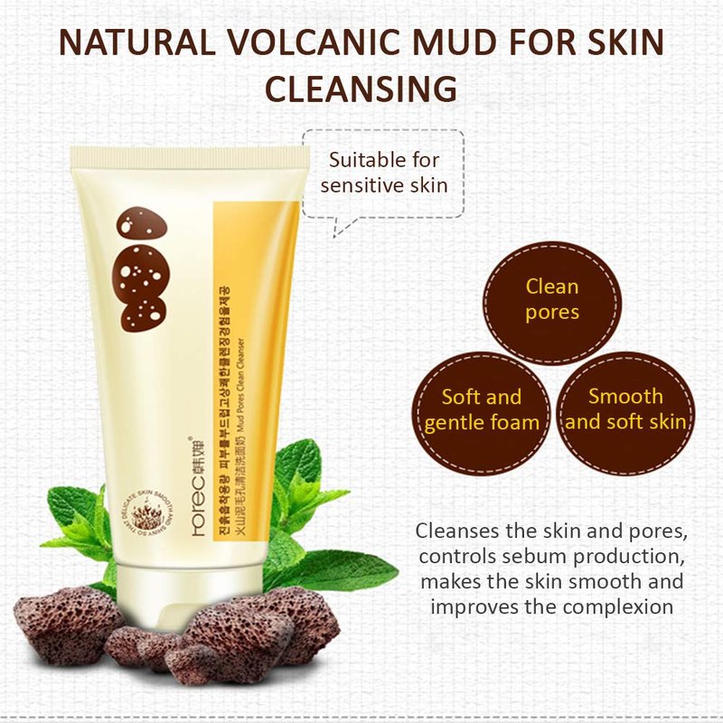 - ROREC Volcanic Mud Clean Pore Cleanser Foam Natural Skin Сare Moisture