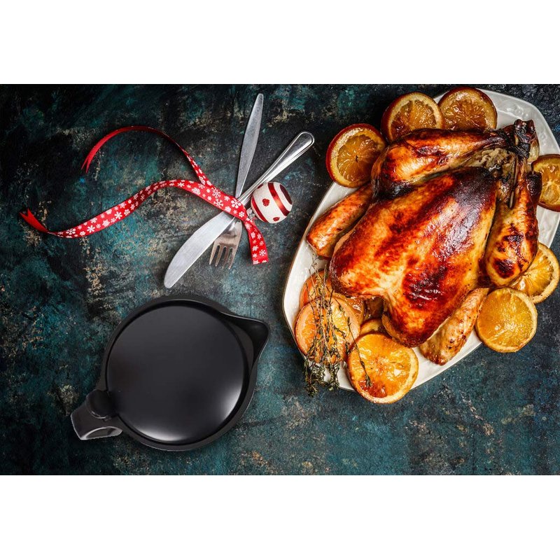 Multi-purpose. Large capacity gravy jug is suitable for any hot or cold sauce or liquid, such as gravy, custard, cream and milk.