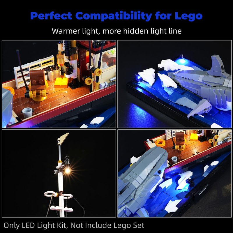 - Illuminate Your Lego World - Tailor-made for the Lego Jaws 21350, this LED lighting kit breathes life into your Lego 21350 Jaws creations with a stunning illuminated display. (Note: Lighting kit only, no Lego model included)