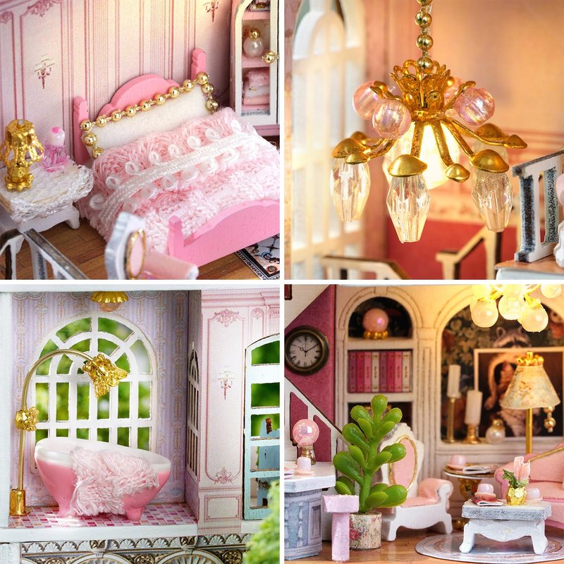 Roroom DIY Miniature and Furniture Dollhouse Kit,Mini 3D Wooden Doll House Craft Model with LED,Creative Room Idea for Valentine's Day Birthday Gift(Romantic Castle-D018)