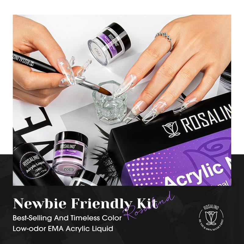 - Warm Reminder: Acrylic powder set clear pink color comes with complete operating instructions, please follow the instructions to apply. If you have any questions about ROSALIND acrylic nail powder, please contact us on time, we will provide you with online customer service consultation and after-sales service within 24 hours.