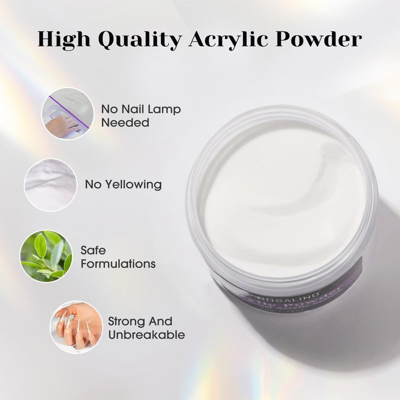 - Long-lasting Effect: white pink acrylic nail powder has a strong self-flowing property, can be pushed, stretched well, and adheres to natural nails. Just follow the correct steps, acrylic nails have excellent adhesion to nails for up to 4 weeks and are made of an excellent non-yellow formula to prevent them from turning yellow or warping and falling off.