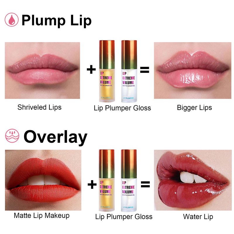 - [Lip Plumper Set]:Yellow plumping lip gloss contains ginger essence, which gives your lips a temporary burning sensation that will soon disappear, leaving your lips volumize lips instantly for bigger lips. Clear lip plumper gloss contains mint essence, which use the lip plumper with mint at night as a sleeping lip mask and it will makes your lips smoother and softer.