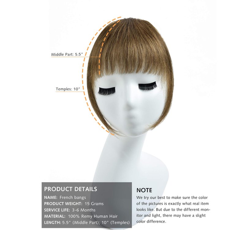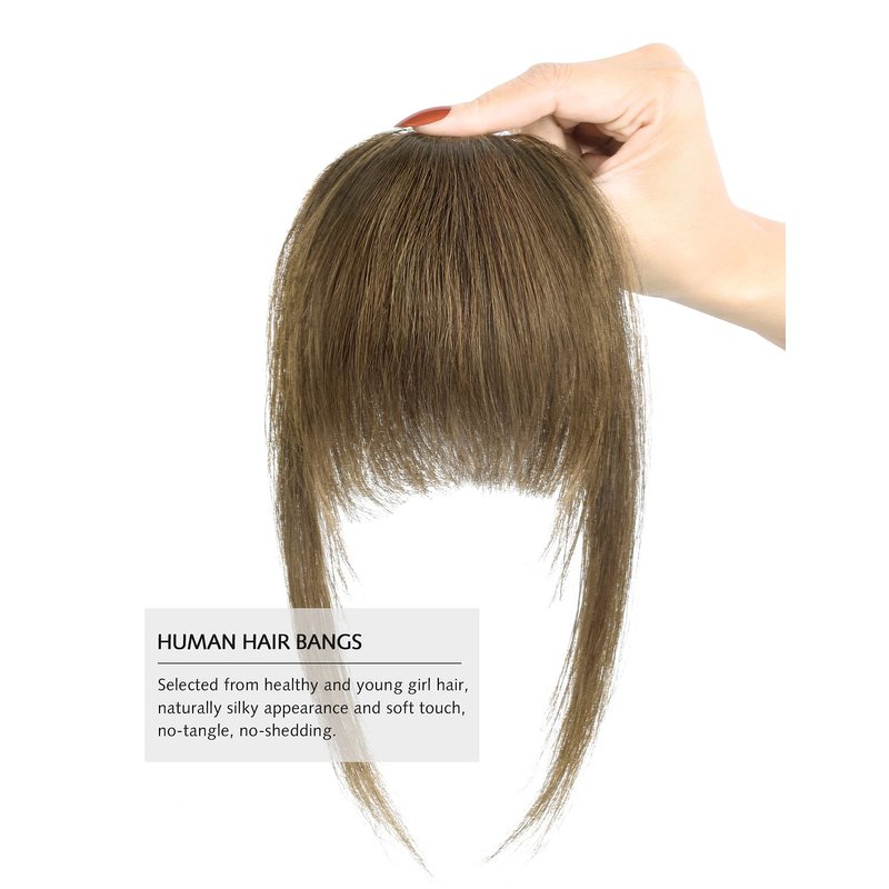 - 100% REMY HUMAN HAIR BANGS - 100% real human hair bangs, selected from healthy and young girl hair, naturally silky appearance and soft touch, no-tangle, no-shedding. It just like your own hair, can be curled or straightened freely by thermal tools and dyed.