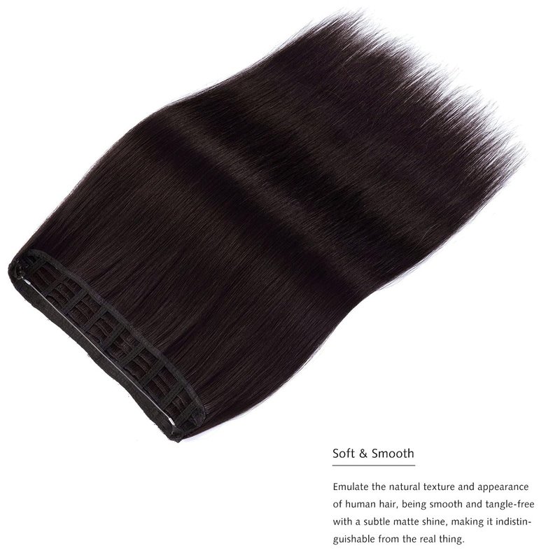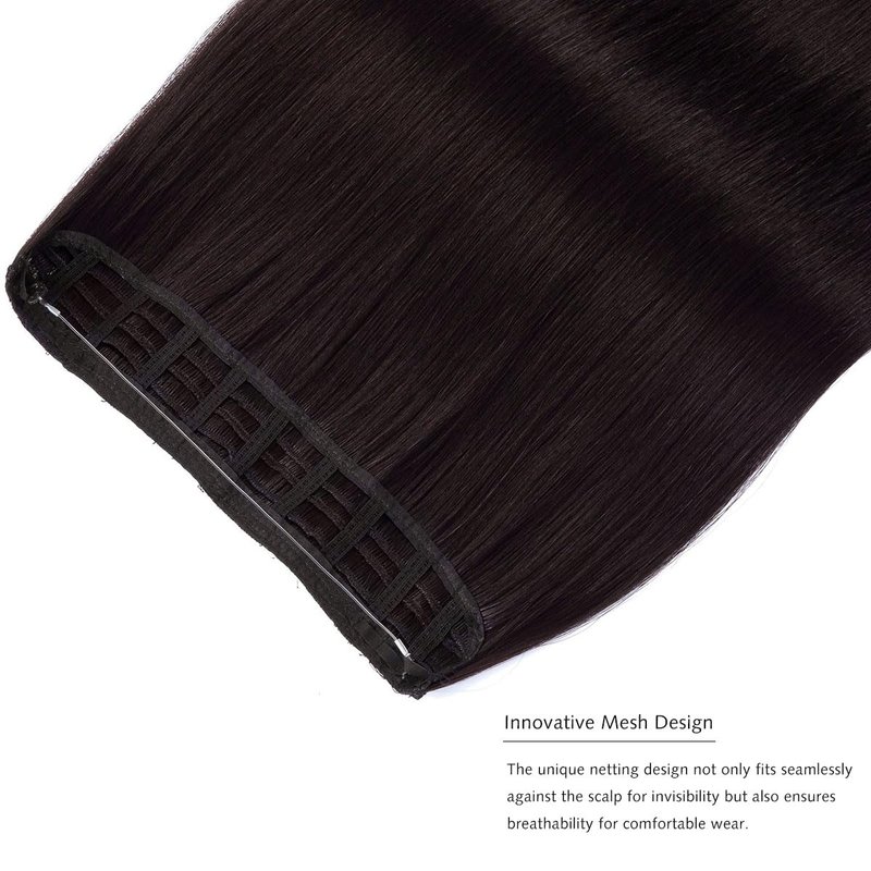 - Natural Looking & Invisible Wire: Secret wire makes the hair extension hidden well, others hardly tell you are wearing hair extension. No clip, no tape, no glue needed, healthy and harmless to your own hair and scalp.Just put the plastic hook into different notches that can adjust the transparent wire to make it loose or tight.