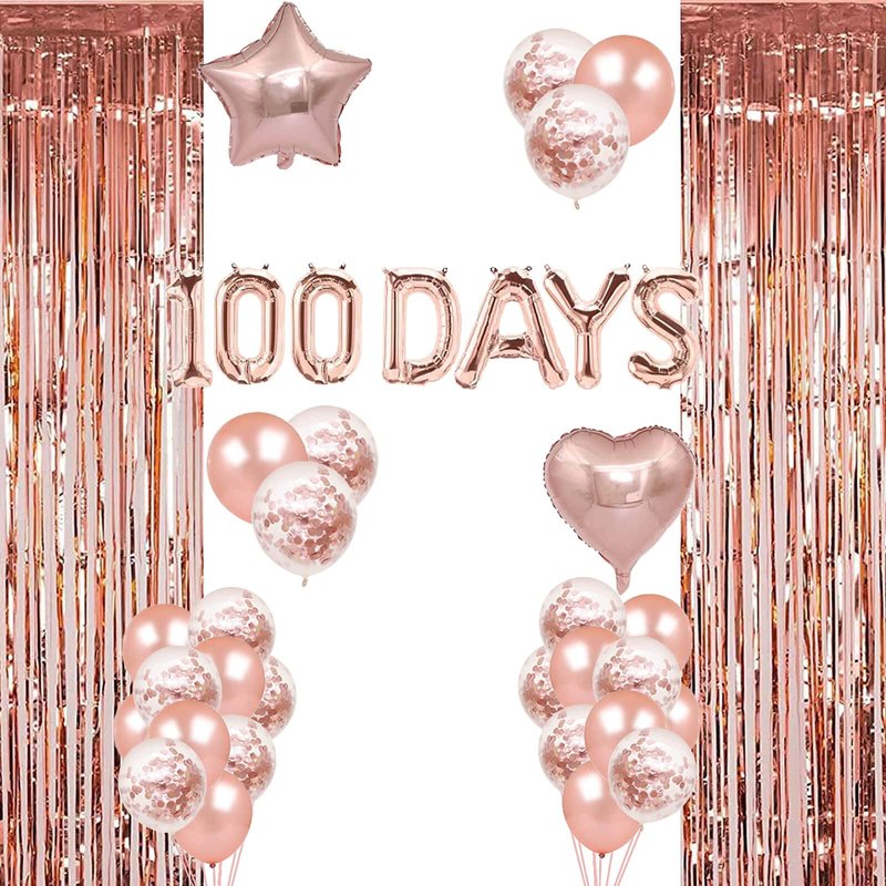 Rose Gold 100 Days Balloons, Happy 100 Days Banner, Korean 100 Days/Baby's 100th Day/100 Days of School/Fall in Love 100 Days Themed Baby Shower Wedding Party Supplies Decorations