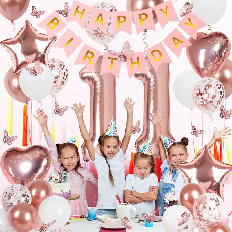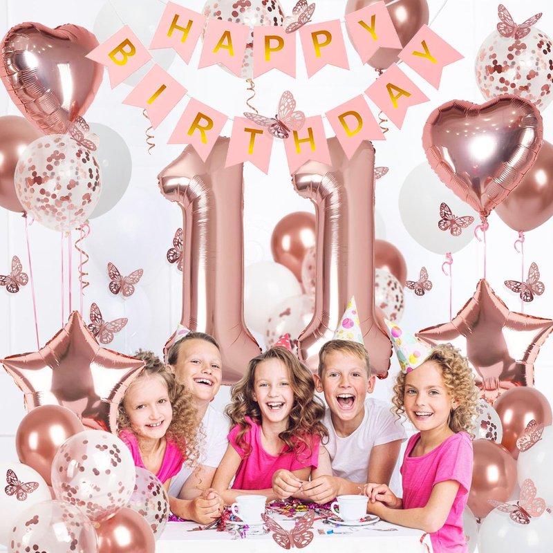 - 【11th Birthday Decorations】 Rose gold themed birthday supplies are the perfect 10th birthday decorations for girl. A pink birthday banner paired with rose gold and white balloons, along with beautiful butterfly stickers, creates a dreamy, romantic, elegant, and sweet birthday party decorations for her
