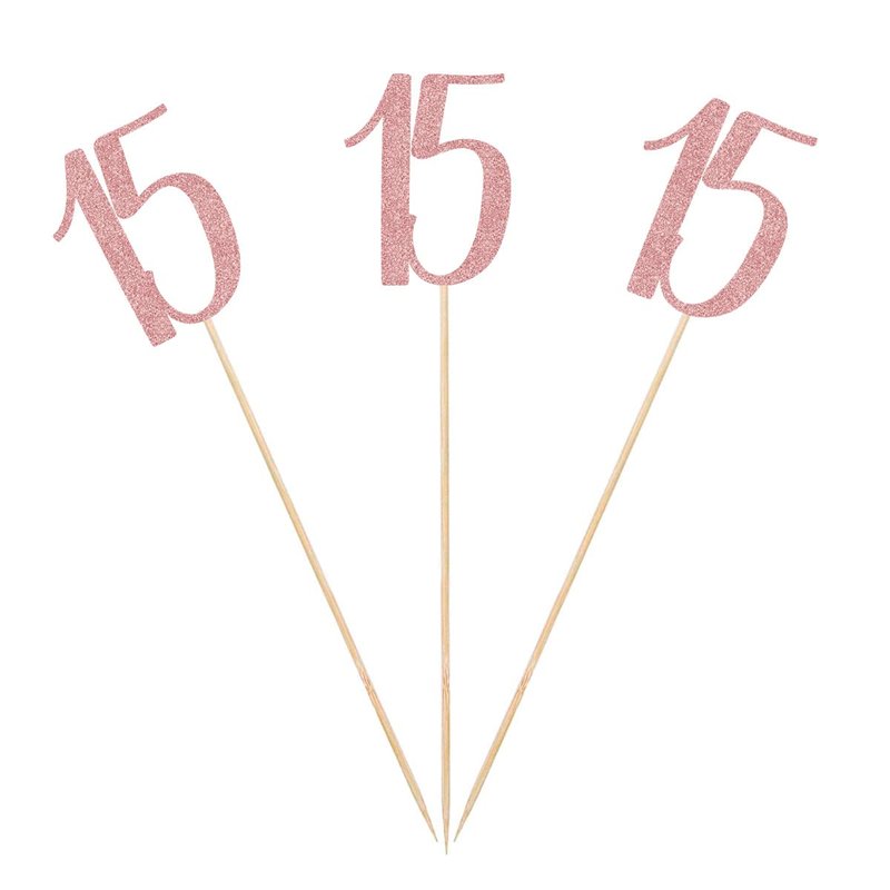Rose Gold 15th Glitter Birthday Centerpiece Sticks, 12-Pack Number 15 Table Topper Anniversary Party Decorations