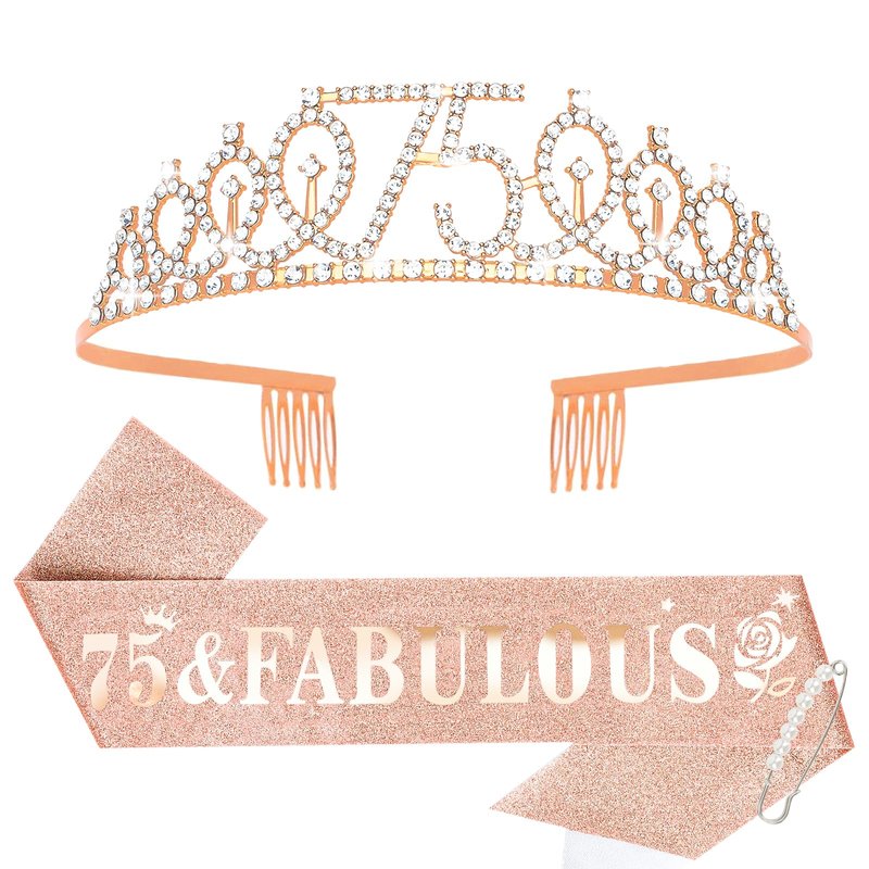 Rose Gold 75th Birthday Sash and Tiara for Women, Happy 75th Birthday Gifts for Women, 75th Birthday Sash and Crown Set, 75th Birthday, Womens 75th Birthday Gifts