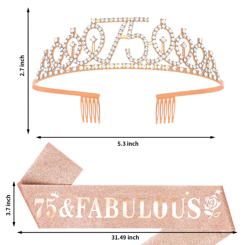- 【75 & Fabulous Birthday Sash】: Made of high quality glitter fabric and printed with rose gold foil words reads "75 & Fabulous". The sash is 62.98 inches long (31.49 inches when folded in half) and 3.7 inches wide.