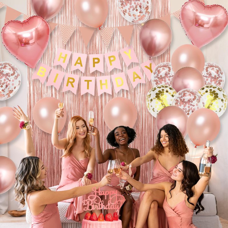 - EFFORTLESS DIY PARTY DECORATIONS: The rose gold birthday decorations for girls women are easy to set up. Whether it's for yourself,your kids,or your friends,you'll enjoy the DIY fun of creating the perfect celebration using the included tools (strip,ribbon,glue). A little effort goes a long way for a memorable birthday experience.